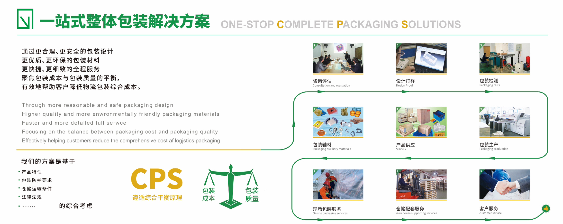 前程包裝始創(chuàng)于1984年,深耕工業(yè)包裝領域40年,致力于為客戶提供包裝咨詢評估、包裝設計與打樣、包裝檢測、包裝產品提供、倉儲物流現(xiàn)場包裝和包裝循環(huán)管理等“一站式”工業(yè)包裝整體解決方案(CPS)服務。