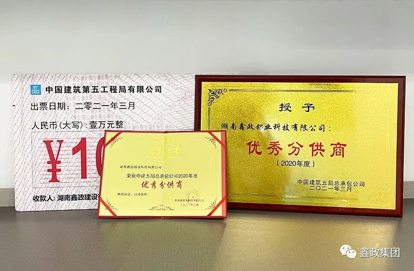 瀏覽次數:1498喜訊連連捷報傳。近日,在中建五局總承包公司2021年分包(供)商答謝會暨優秀分包(供)商表彰會上,集團下屬子公司湖南鑫政鋁業科技有限公司與湖南鑫政建設有限公司分別喜獲2020年度“優秀分供商”與“良好分包商”獎項。