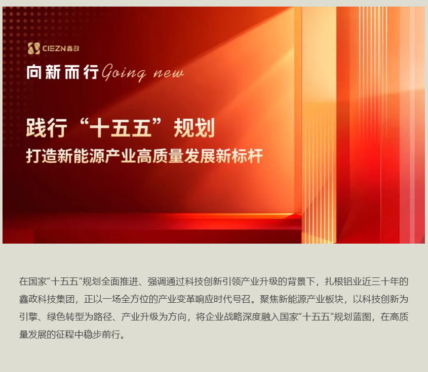 面向“十五五”,鑫政將繼續通過綠色智造、科技創新與產業升級的協同推進,在新一輪產業變革中搶占先機。立足中國制造堅實基礎,聚焦新材料、新工藝、新應用的系統突破,推動鋁材料在新能源領域的創新引領,在實現“十五五”規劃目標的進程中,展現從“中國制造”到“中國引領”的鑫政實踐,為全球綠色轉型貢獻中國智慧與中國方案。